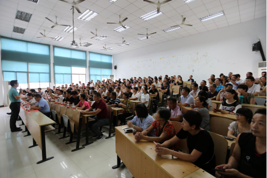 在本科生考研与就业情况介绍中,夏院长运用大量数据详细介绍了学院近几年来学生就业区域、就业单位性质、考研院校等信息。在谈到家长与孩子沟通时,夏院长强调了有效的沟通是家长帮助孩子成功的一个重要因素,并和家长们分享了自己的个人体会,以百米赛跑效应和红绿灯法则来鼓励新生们勇往直前,抓住时机,努力学习,积极参与科研工作。夏院长还着重与新生家长探讨了新生在大学的学习和生活问题,并运用鲜活的案例说明网络游戏成瘾对当代大学生的害处。最后夏院长以“宝剑锋从磨砺出,梅花香自苦寒来”勉励大家。